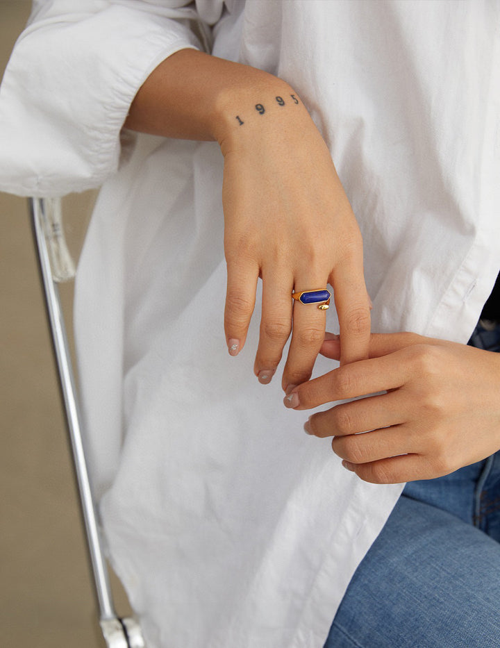 Minimalist French Style Lapis Lazuli Sterling Silver 18K Gold-Plated Adjustable Ring
